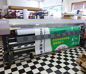 インクジェット印刷した看板を屋外でも使える様にラミネート加工いたします。